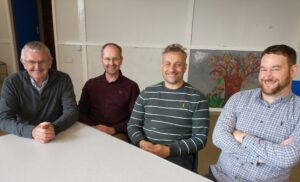 O’r chwith i’r dde: Dafydd Picton Jones, Euryn Roberts, Steffan Job a Rhodri Glyn, henuriaid a gweinidog Capel y Ffynnon